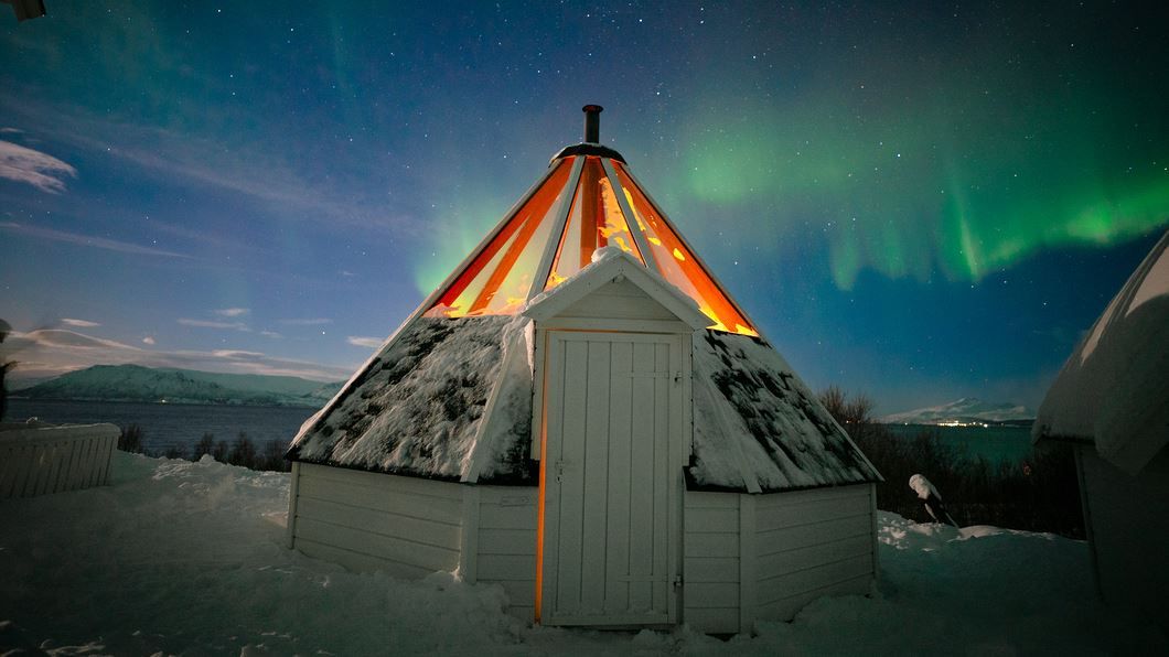 Included: Round-trip transportation from Tromsø to the basecamp, expedition meal, dinner, breakfast, coffee/tea and snacks, guided excursion with snowshoes or on foot (depending on weather conditions), thermal suit and boots, Crystal Lavvo with comfortable beds, firewood, tripods, internet connection, free use of cross-country skis (not guided)