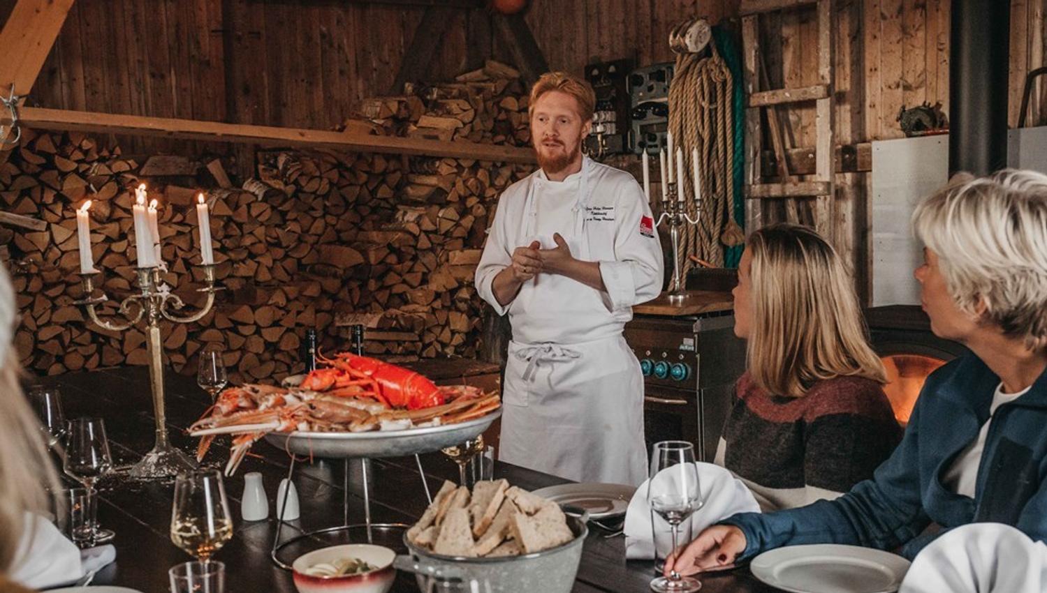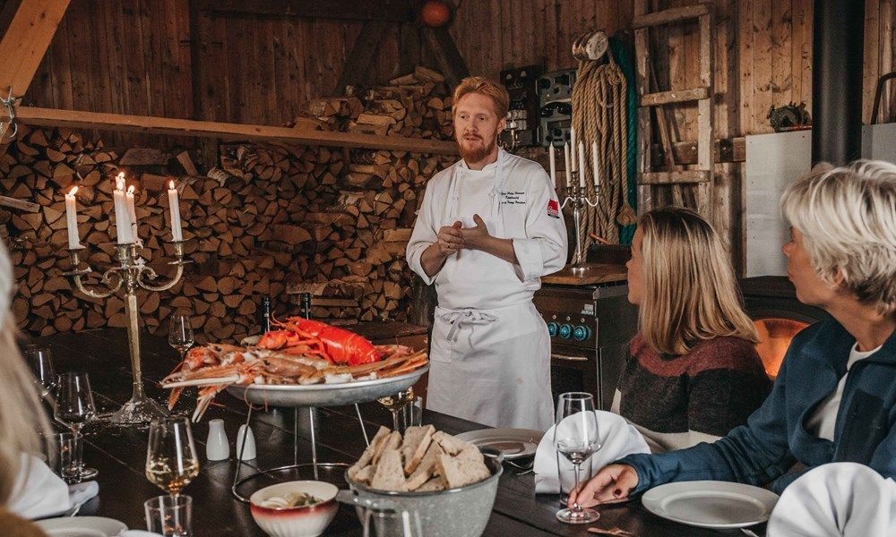 Serving food and drinks at the first station is taken care of by the staff. Out here, you should first and foremost relax and let the staff do the practical work. However, there is of course full opportunity to be with the chefs when the meal is prepared with ingredients you may have brought from the sea.