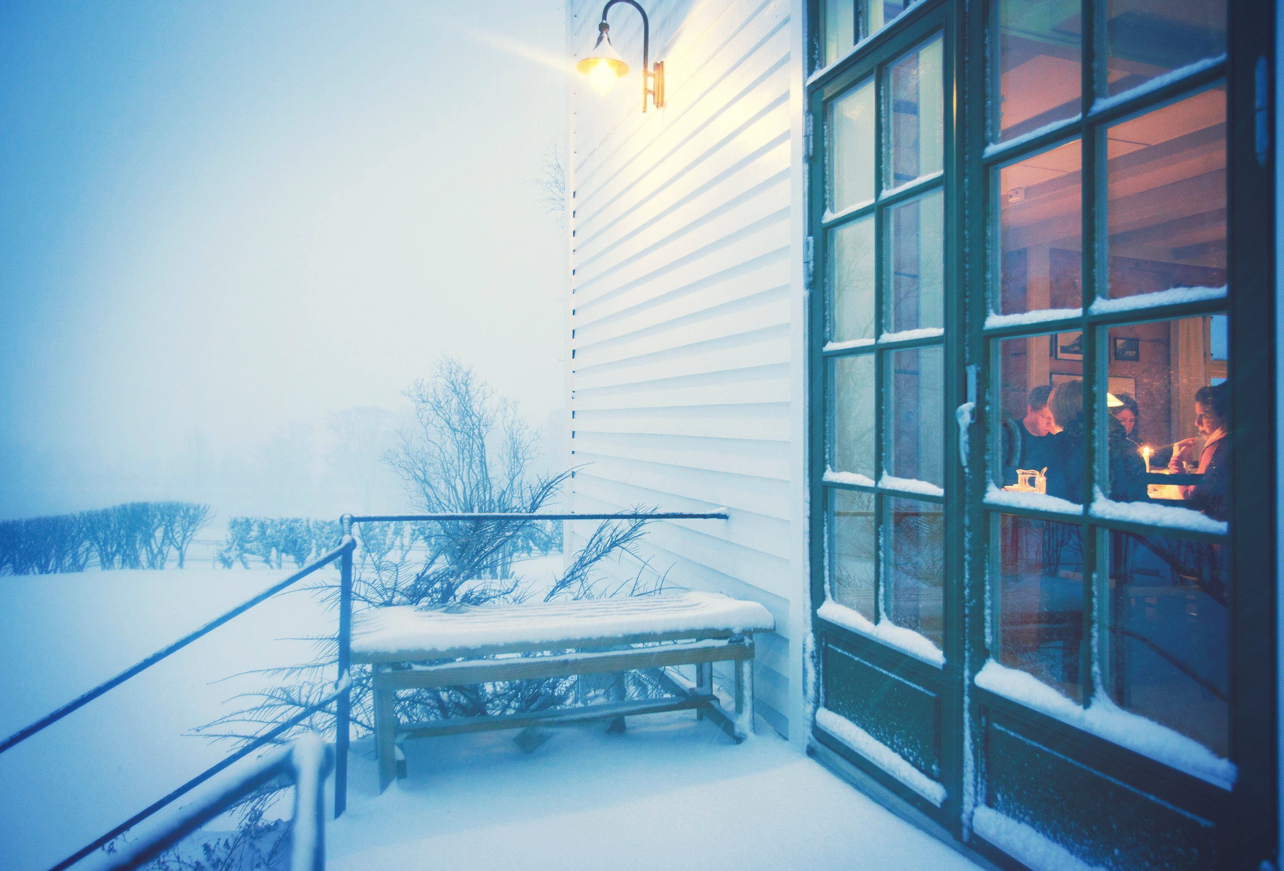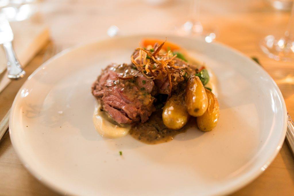Accommodation in locally-sourced beds from Wonderland Beds, delightful breakfast with homemade bakery and local products, packed lunch for your trip, and warm drinks in your thermos. Additionally, enjoy delicious snacks in the bar post-hike, an aperitif in the fireplace lounge before dinner (from 19:00), and a sumptuous three-course dinner served around a communal table at 19:30.