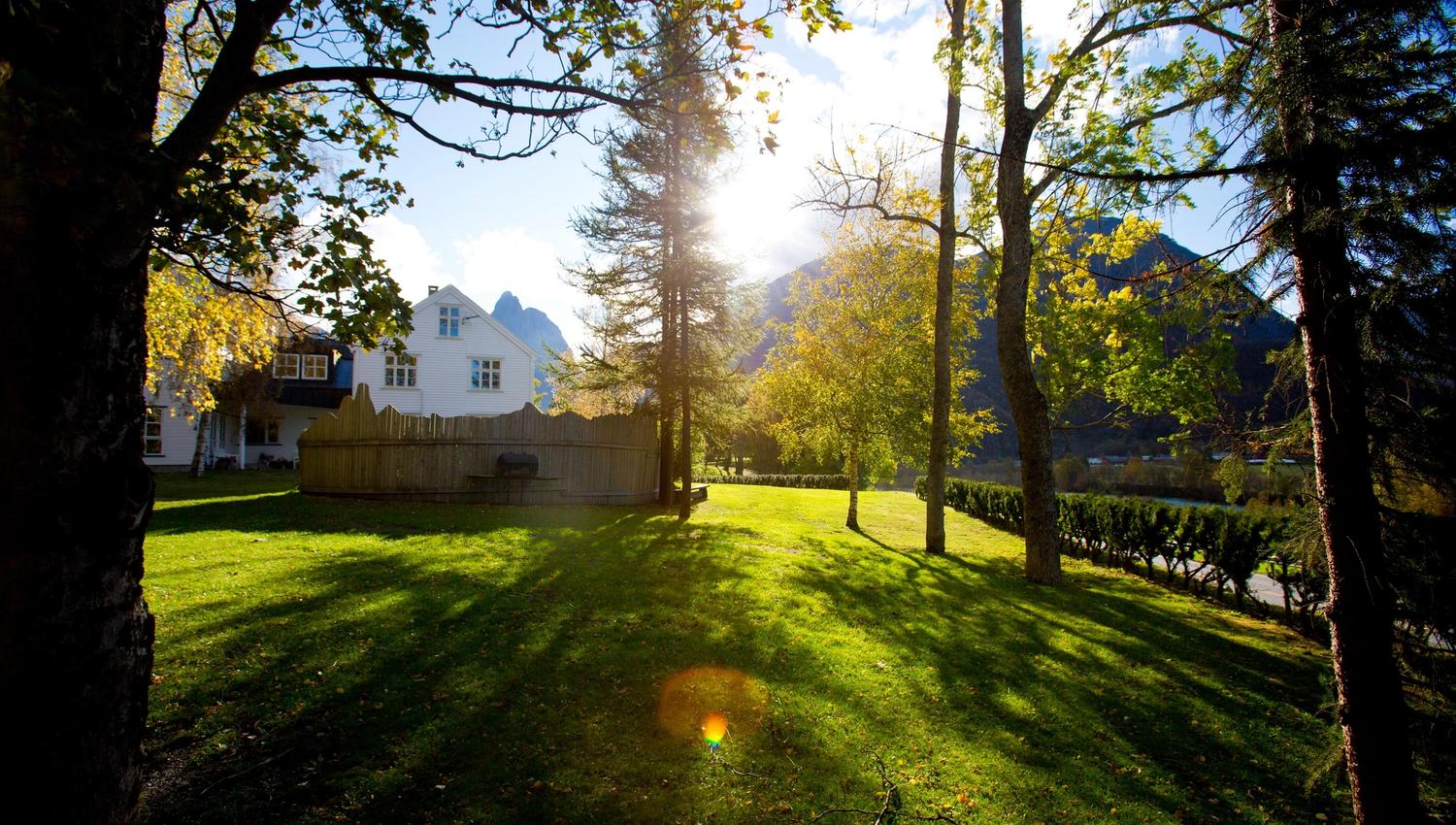 Norway's first tourist hotel since 1860, now modern with unique ambiance, nestled in Romsdal valley near Troll Wall and Romsdalshorn.