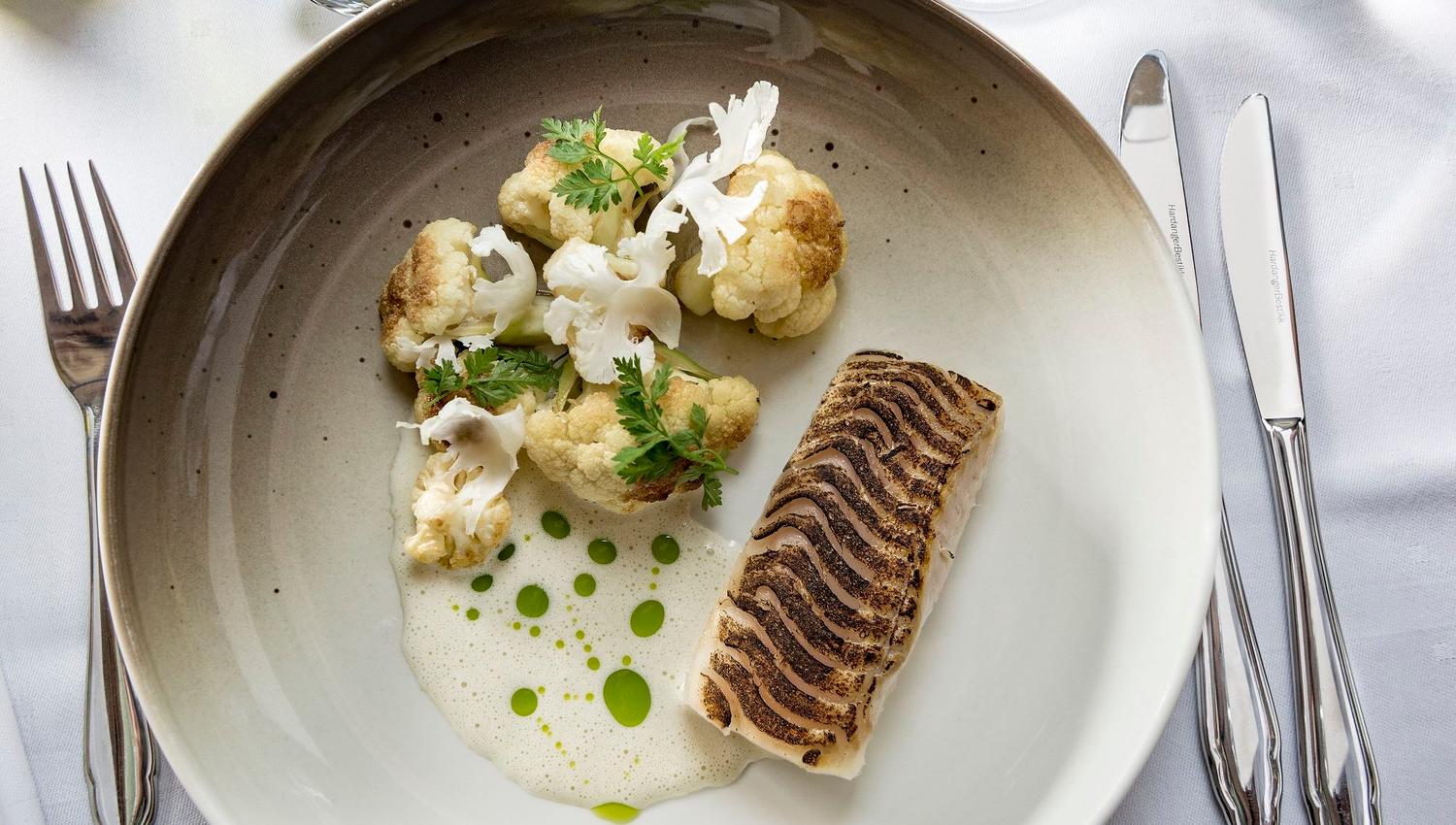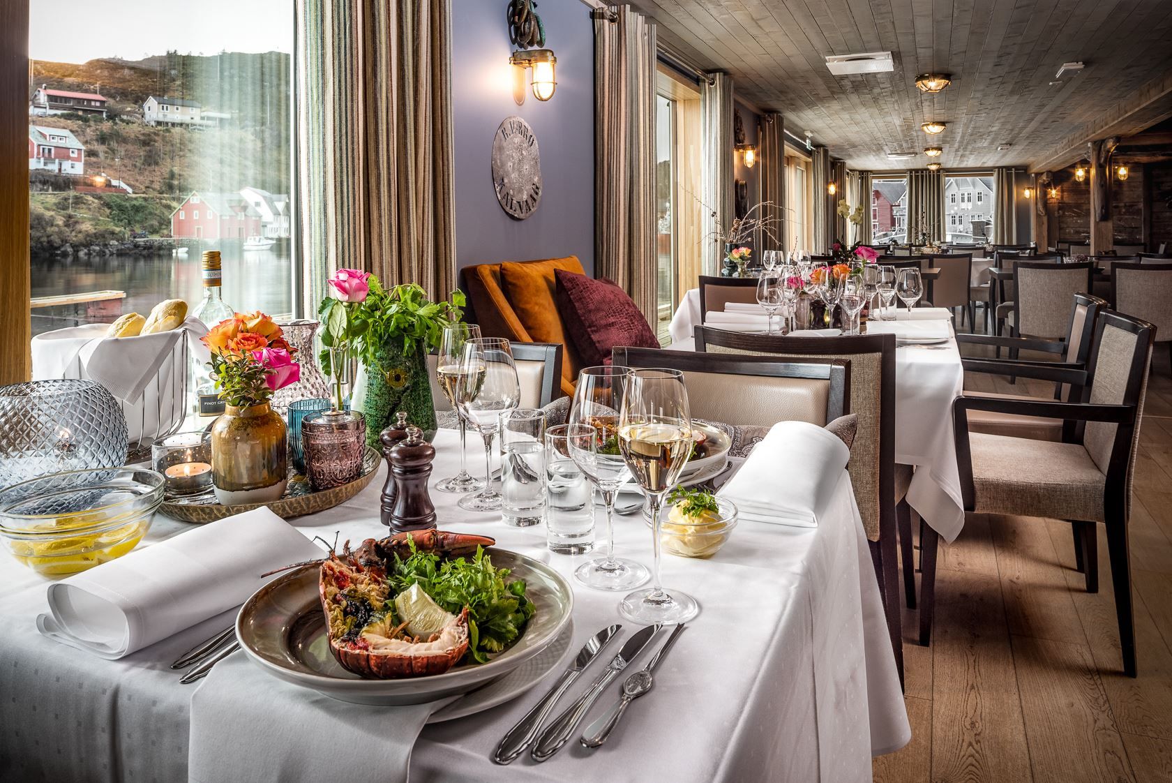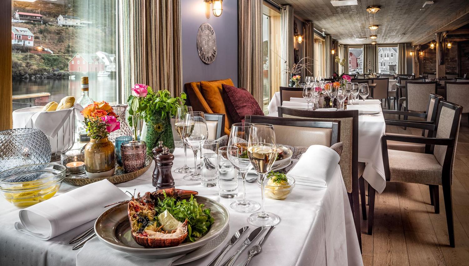 When you come to Knutholmen you step into a maritime world. The Fosse family, who run and own the place, have focussed on maintaining the old fishing village style. The restaurant is a prime example. Here you will find a boat, bailers, casks, coils, pebbles and other maritime miscellany. Outside is an aquarium containing fish and shellfish from around the area. Take a look around beautiful Kalvåg and the local area here.