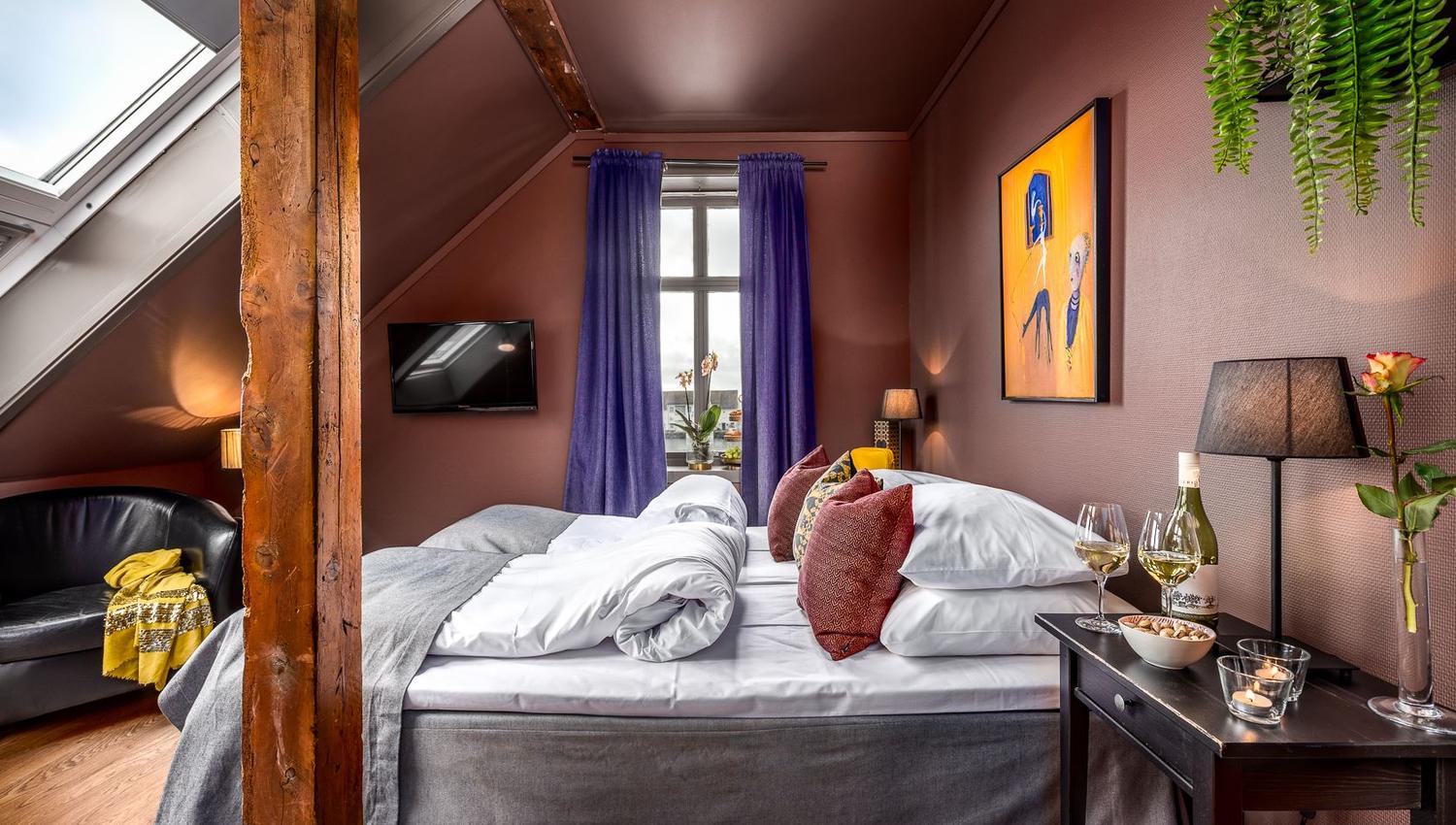 Hotel rooms in traditional or modern maritime houses.All rooms have free WiFi access.Breakfast is included and served in Knutholmen’s restaurant, within walking distance of the room. All rooms are in the vicinity of the small bay and situated on ground, first or second floor. Checking in and out is done at Knutholmen.