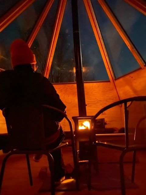 The lavvu is tucked away in an area with minimal light pollution, offering ideal conditions for waiting for the northern lights to appear – or for enjoying them as they dance across the sky. Whether you come alone or as part of a group, the silence and peaceful atmosphere make the experience especially powerful and memorable.