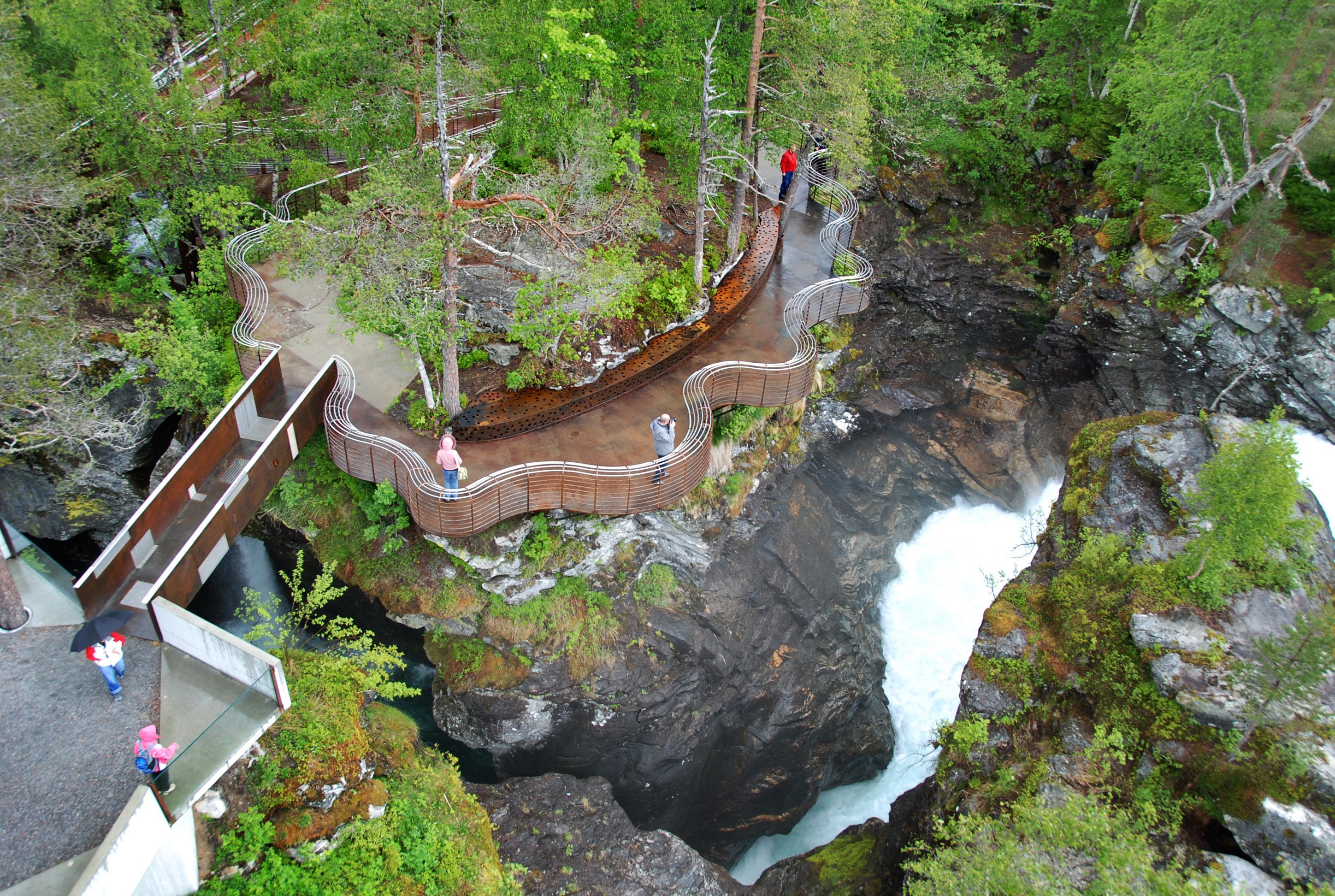 Gudbrandsjuvet is a 5 metre narrow and 20–25 metre high ravine, easily accessible from main road route 63 between Valldal and Trollstigen.