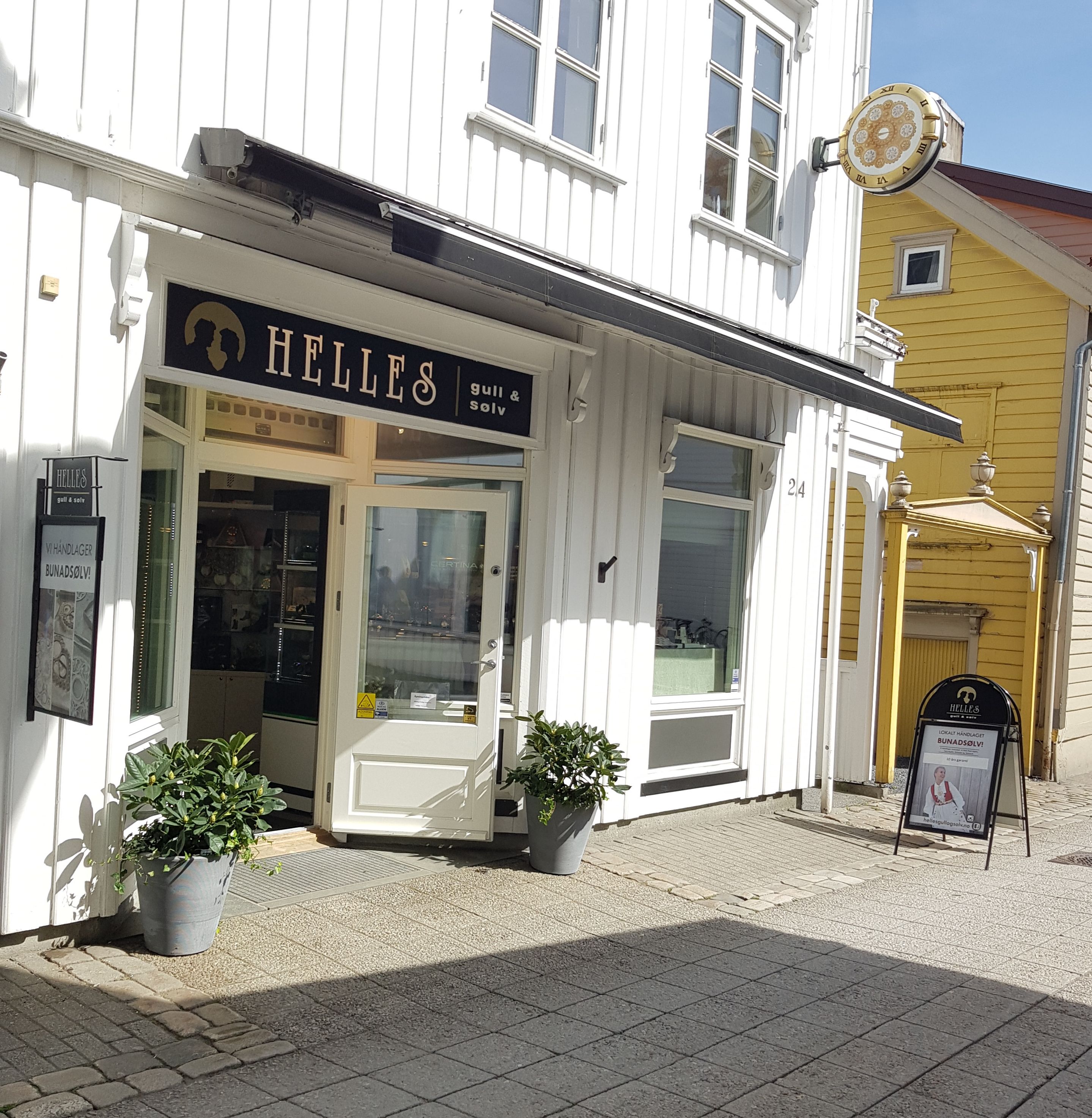 Helles Gull & Sølv handcrafts traditional bunad silver for four regions: Åmli/Aust-Agder, Vest-Agder, Telemark, and Setesdal. They also restore and repair bunad silver and other jewelry items. You will find watches, jewelry, and various gift items for children. If you need appraisal services for jewelry, they are certified to handle the job.