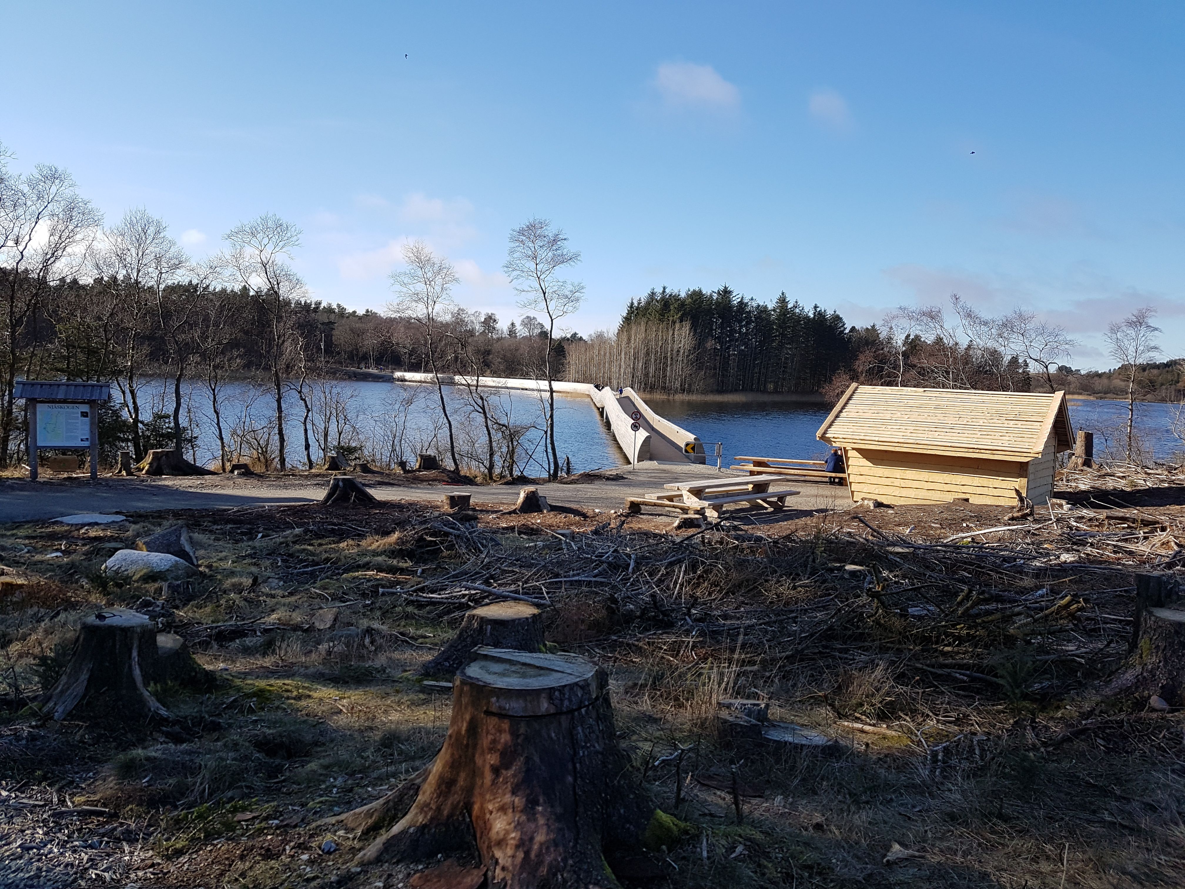 Between Bryne and Kvernaland along the FV505 is the forest, Njåskogen, a nice forest with well-illuminated paths. You have easy access to Midgardsormen, the wooden bridge that winds itself across the lake.