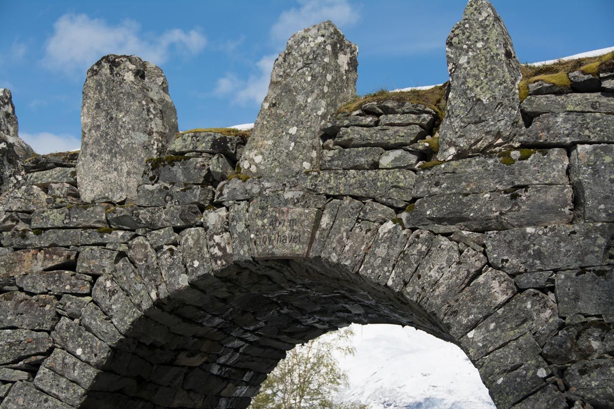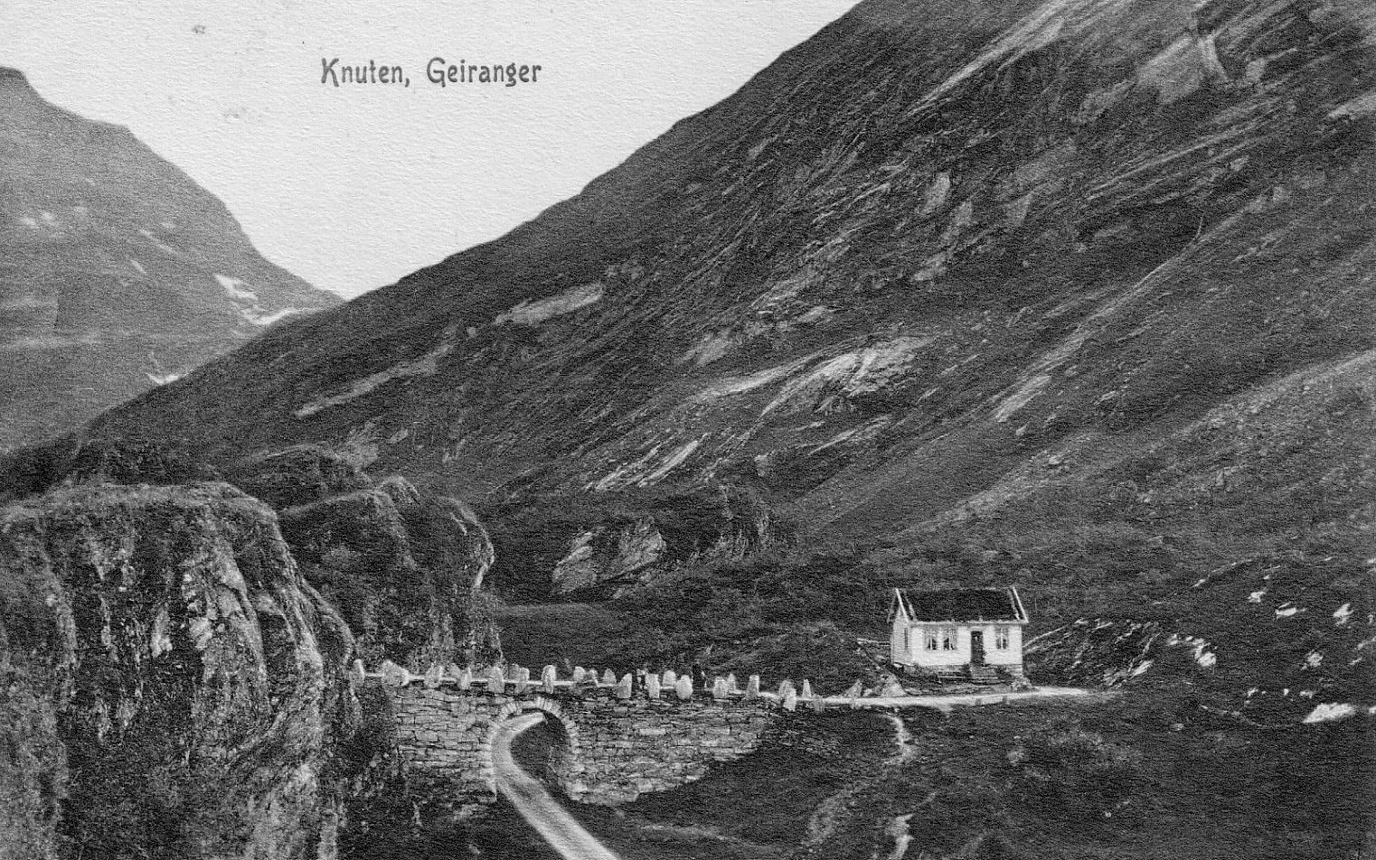 Knuten was constructed in connection with the work done on Geirangervegen to win height and navigate difficulties in the terrain. The construction in solid rock is witness to the engineering skills of its designers and those who built it, and it represents an important monument to the road-building pioneers who built Geirangervegen from 1881 and to the opening in 1889.