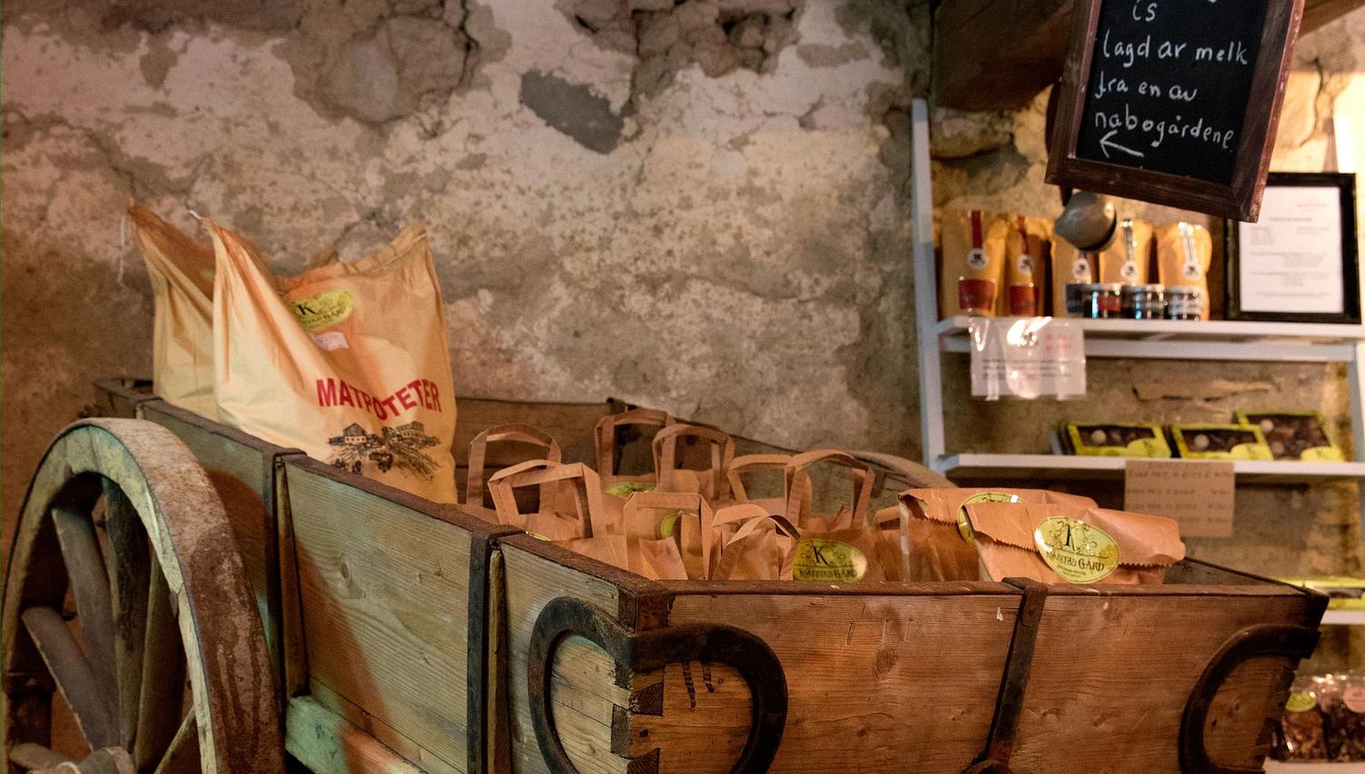 In the farm shop at Kvarstad Gård near Brumunddal, you can take home goods from the farm and the surrounding region.