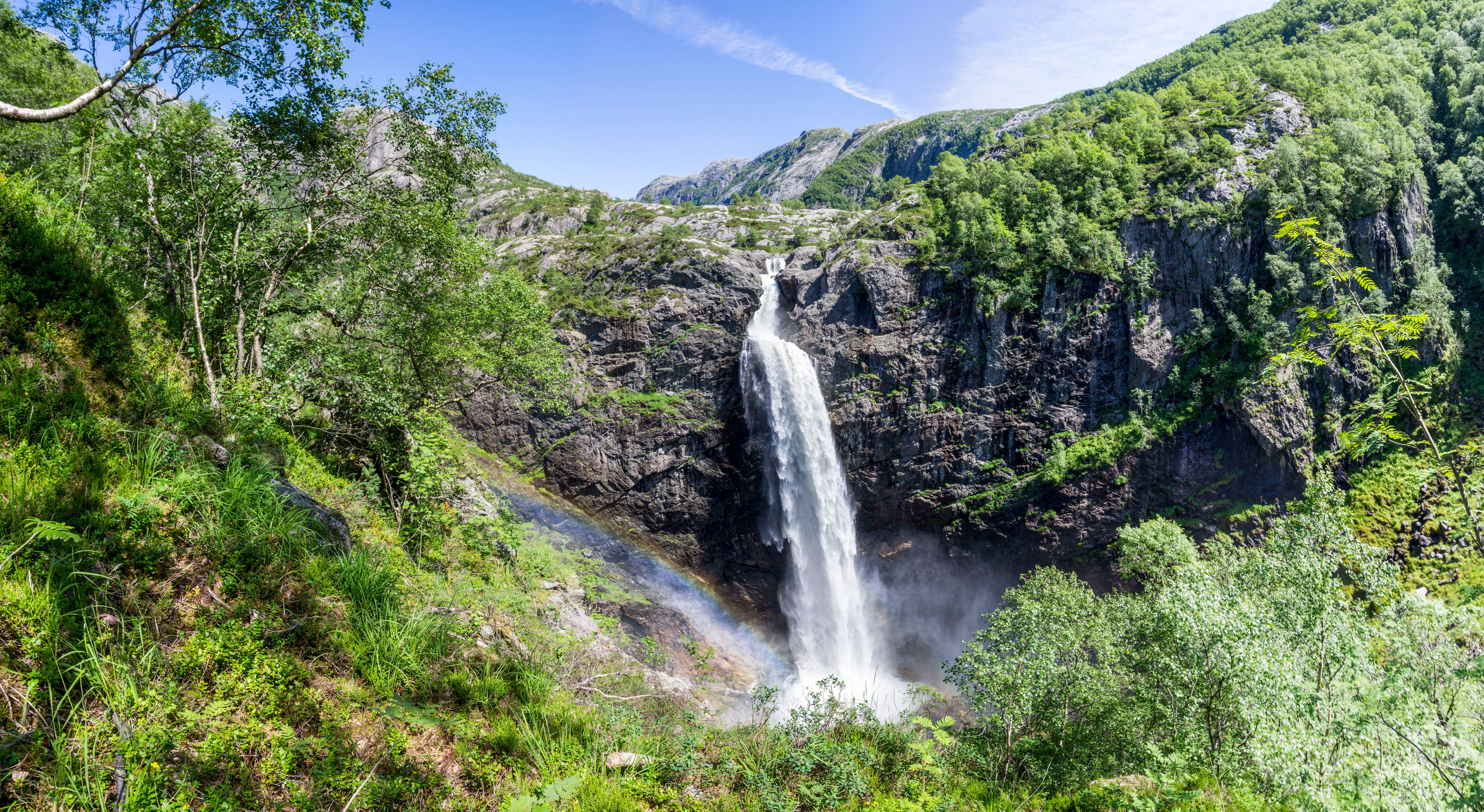 Short yet challenging hike to Månafossen. The effort pays off for the breathtaking view of the waterfall plunging 92 metres through a narrow gorge.